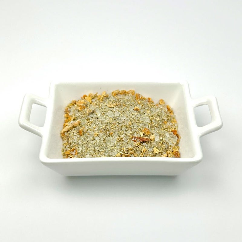 海塩、ウンシュウミカン果皮、ヨモギ葉、カミツレ花、ローマカミツレ花油、ケイ酸Ca、香料