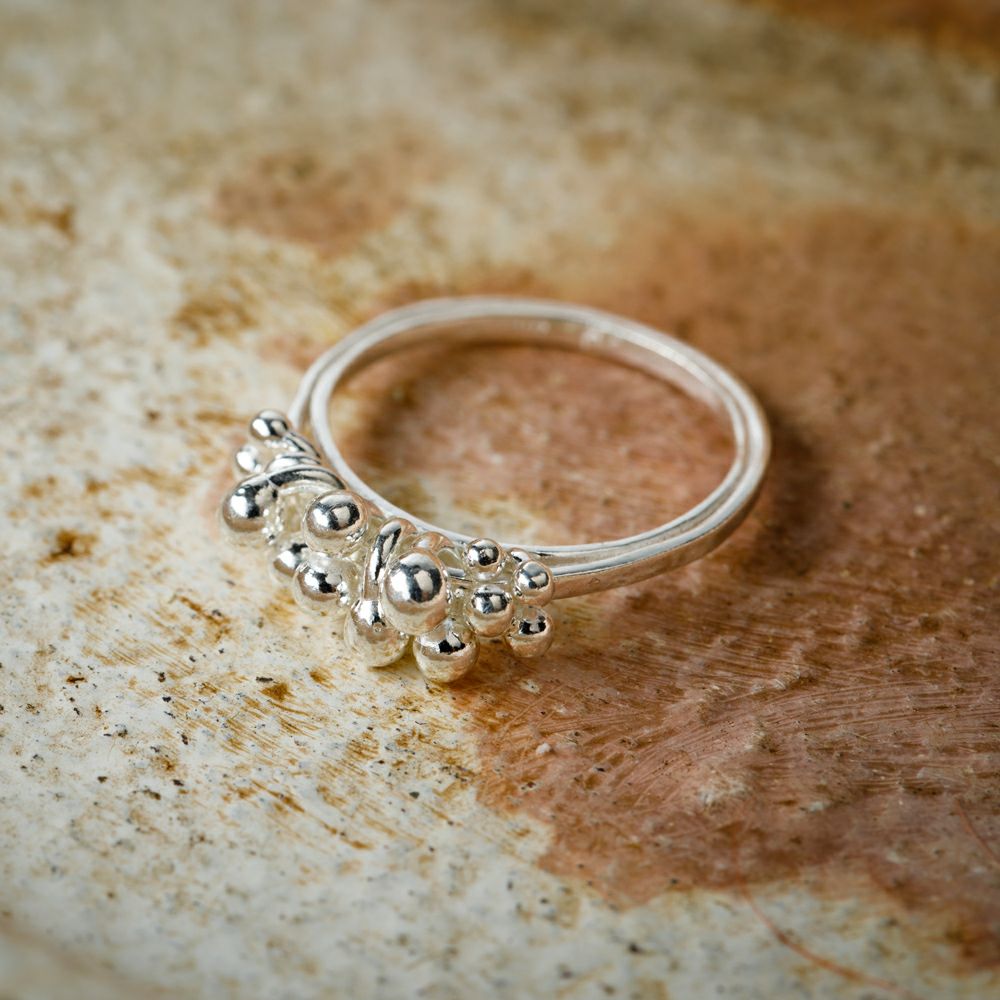 丸い銀の粒が様々な角度から光を受け、瑞々しく輝きます。