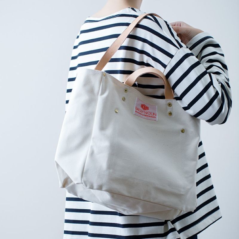 程よく厚みのある生成りの9号帆布とヌメ革のハンドルは、使い込むほどに馴染み良く変化していきます。