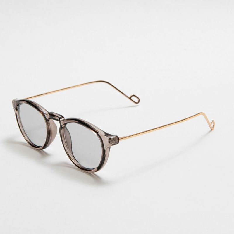 丸みを帯びたプラスチックフレームにすっきりとしたメタルテンプルを合わせることで、甘くなり過ぎず、どんなシーンにも合わせやすいです。