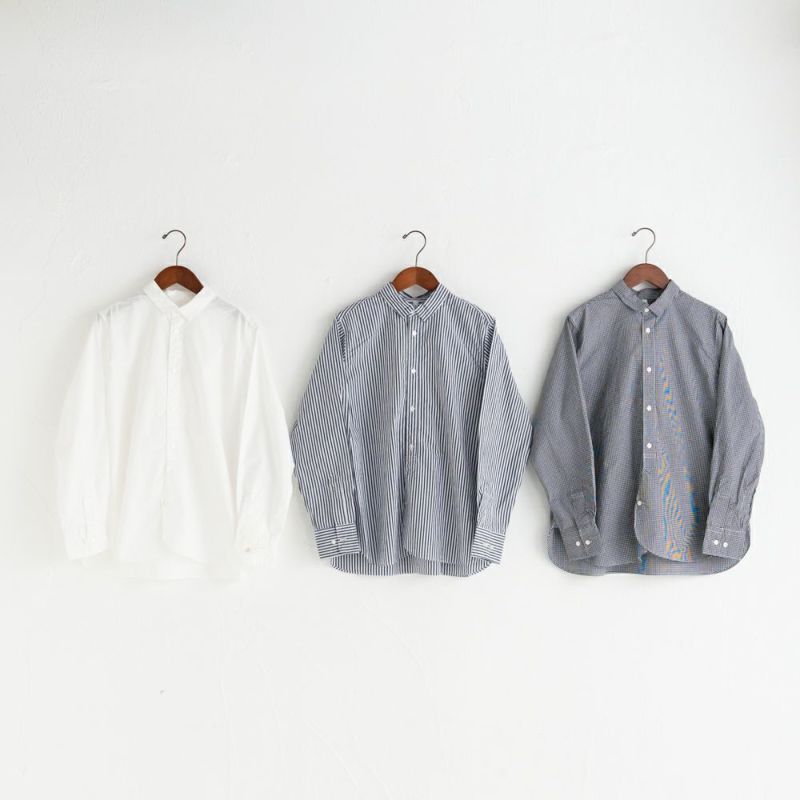 シンプルなデザインでこれ1枚でも、ニットやベストと重ね着しても◎なシャツです。