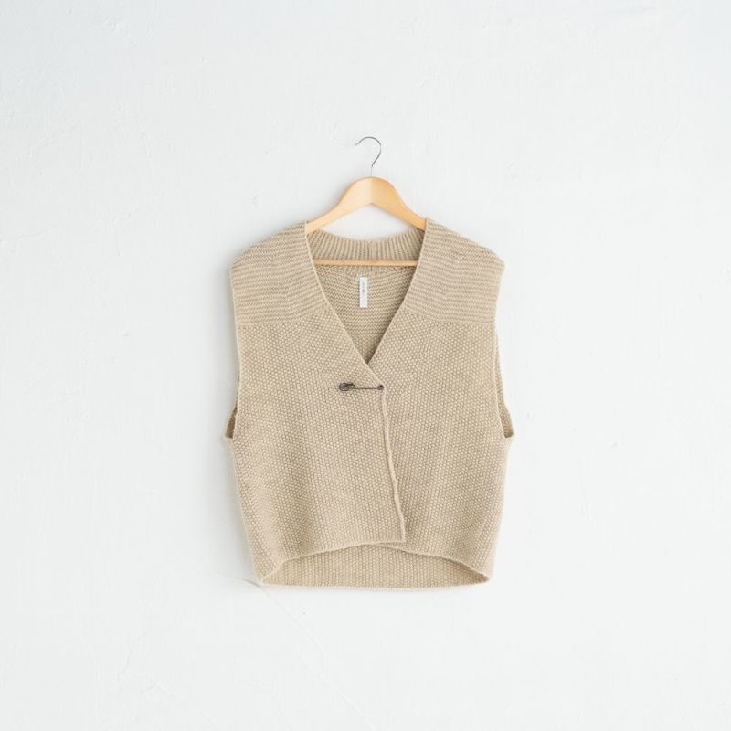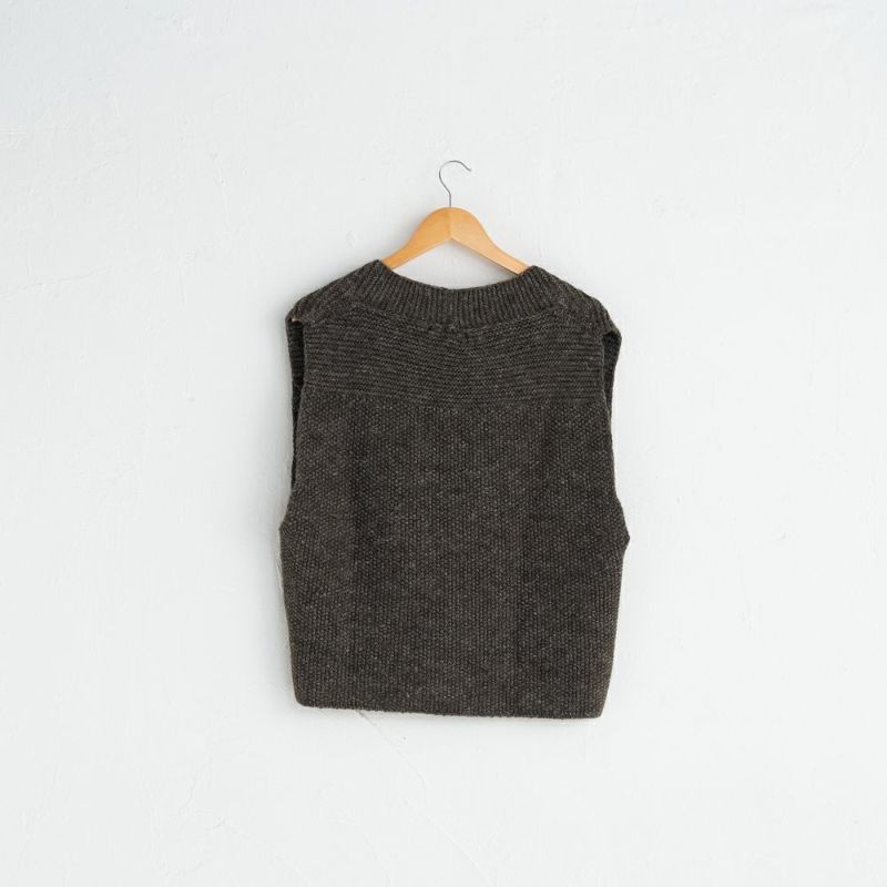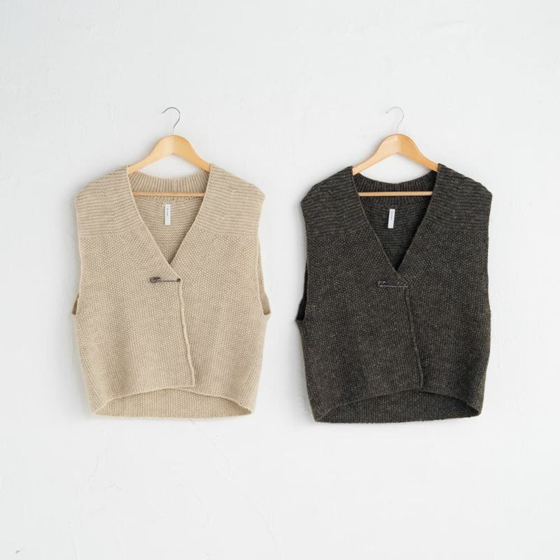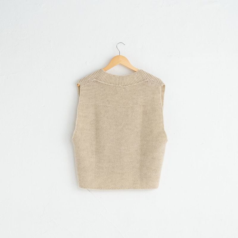 素材のナチュラルさを生かした柄編みのシンプルなVネックベストです。