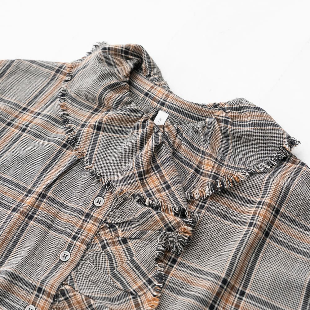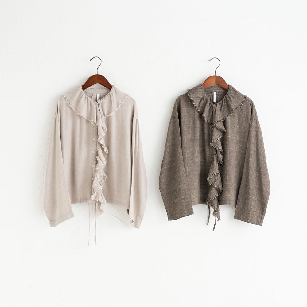 HIYORI(ひより) ラウンドヘム スタンド衿長袖シャツ