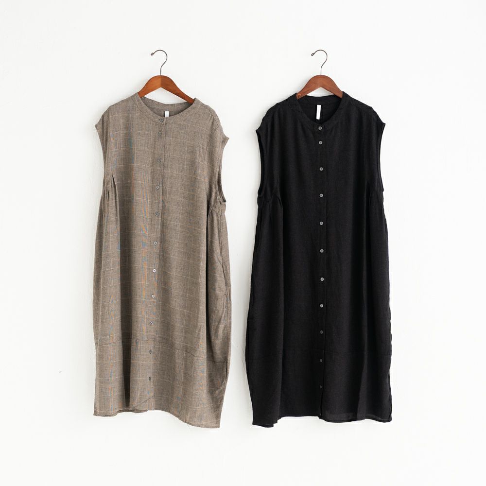 HIYORI(ひより) ノーカラーギャザーワンピース