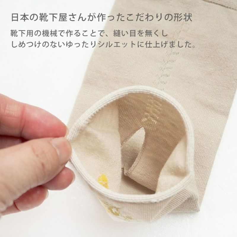 靴下の工場さんで作っているので接ぎ目のない快適な着け心地に仕上がっています。