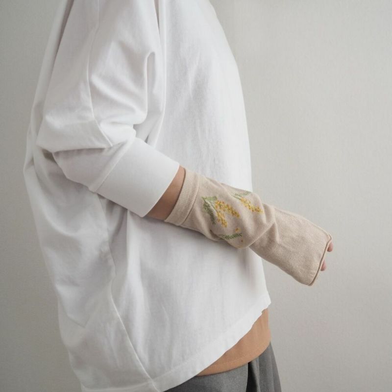 さらりとした綿麻素材のショート丈のアームカバー