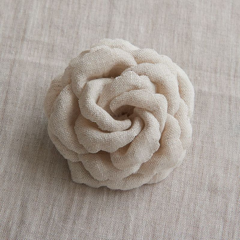 リネンを100%使用したバラ型のコサージュ。オケージョンコーデに一つ加えるだけで、一際華やかな印象です。