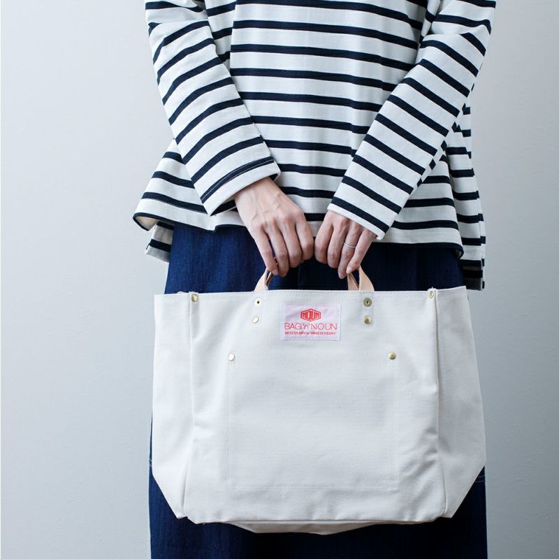 程よく厚みのある生成りの9号帆布とヌメ革のハンドルは、使い込むほどに馴染み良く変化していきます。