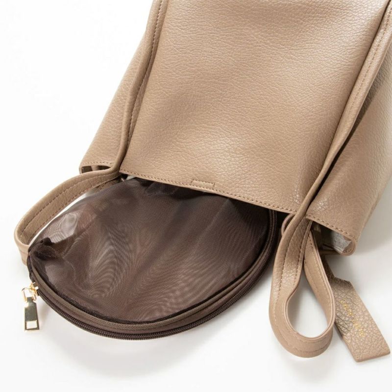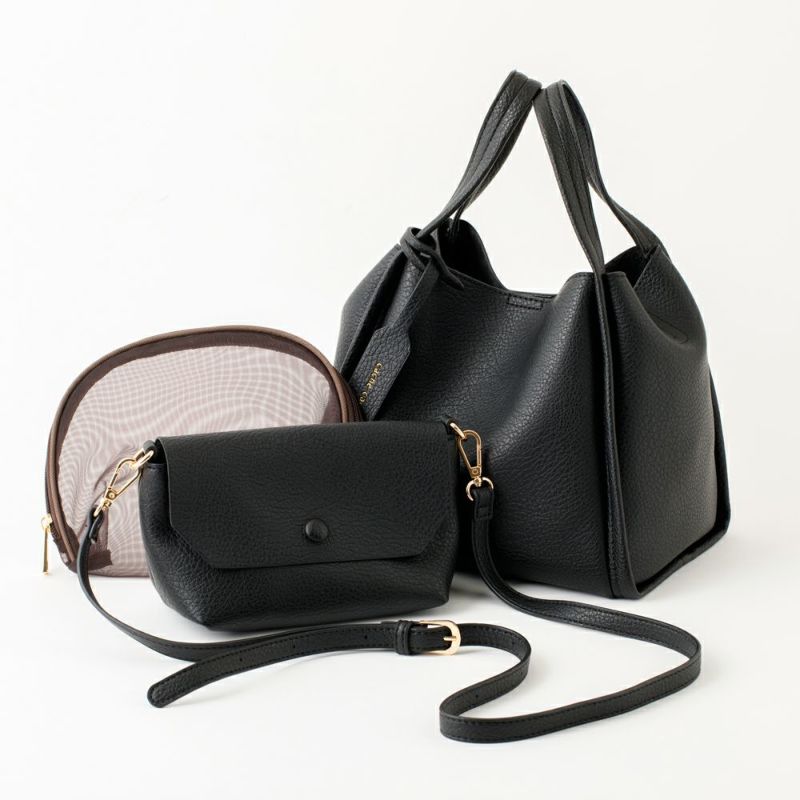 お出かけに便利なサイズのショルダーバッグとメッシュのポーチがセットになったバリュアブルなトートバッグです。