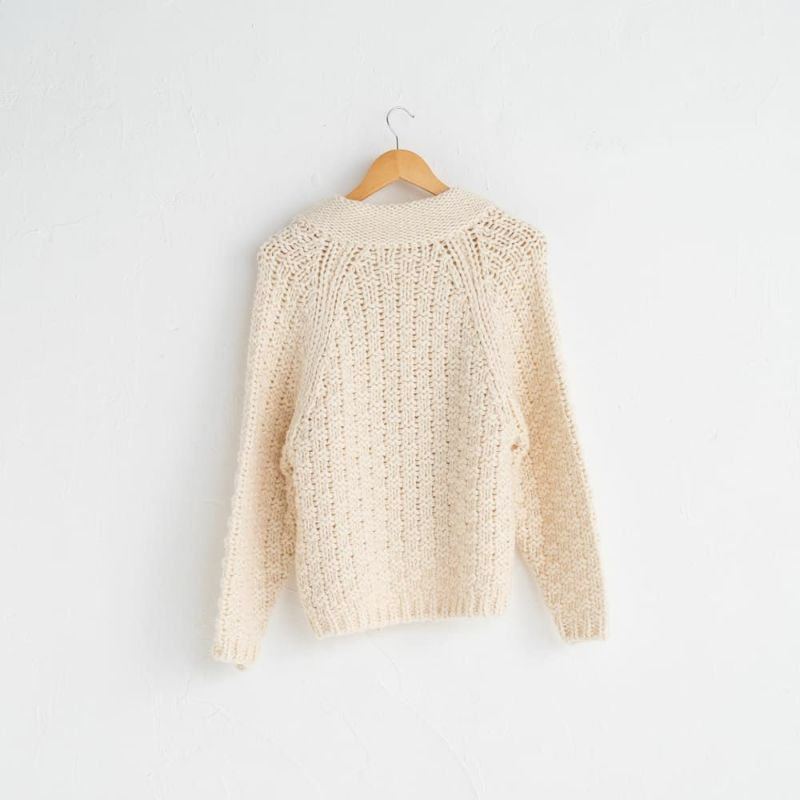 ざっくりとした編みが特徴的なロービングニットの襟付きカーディガン。