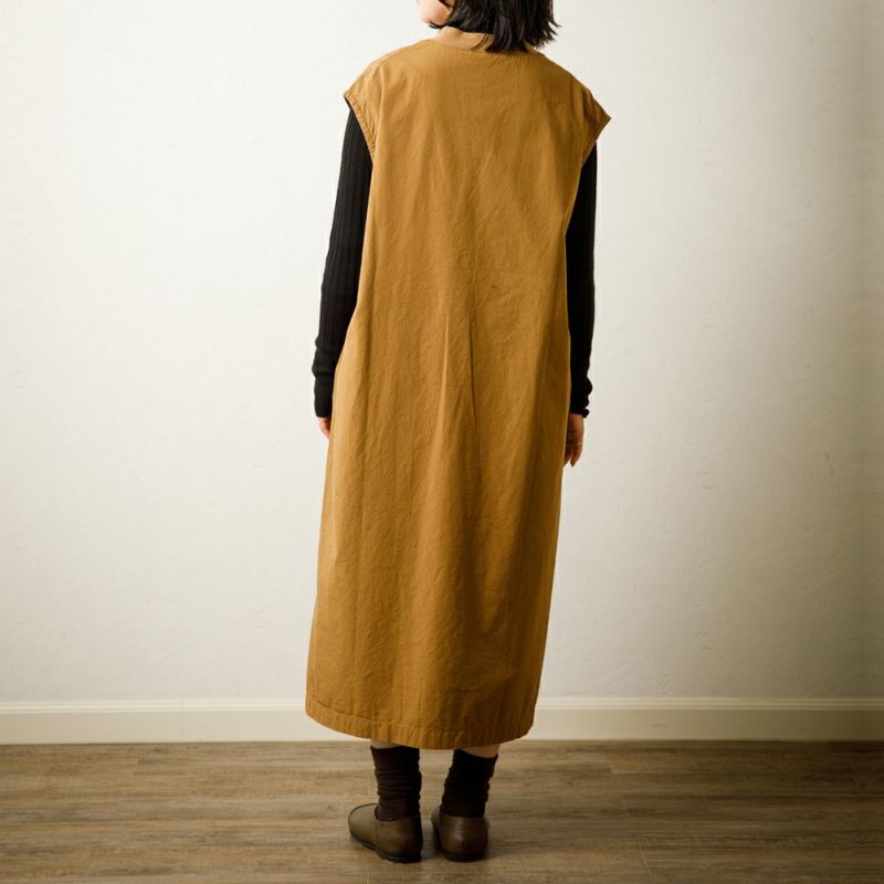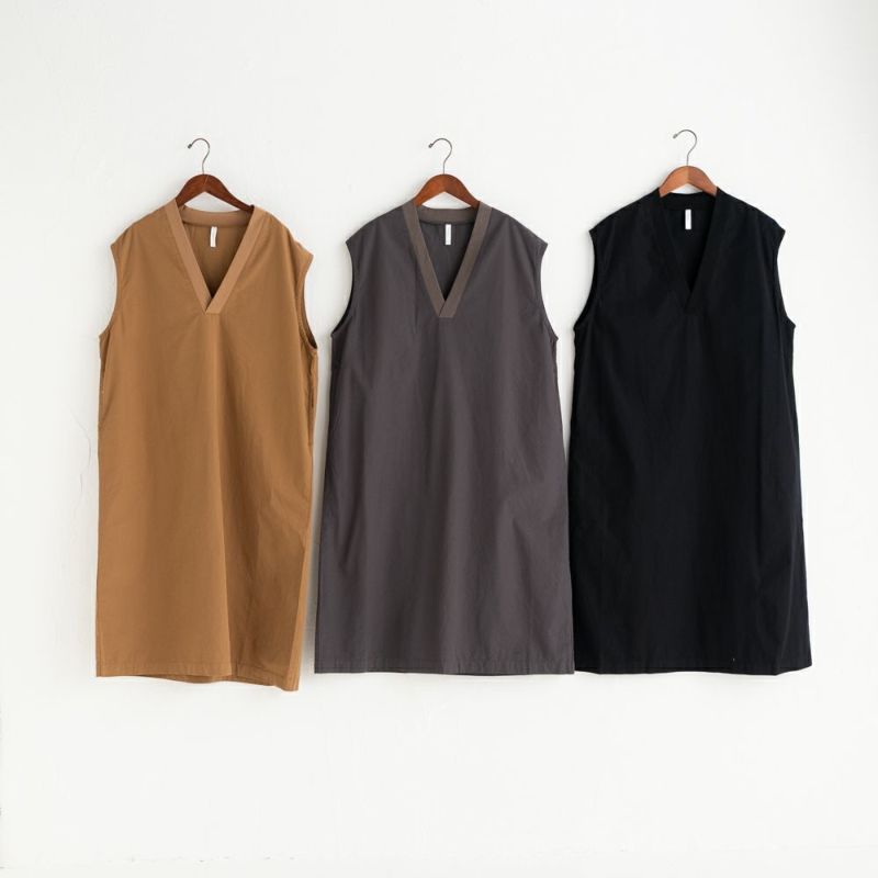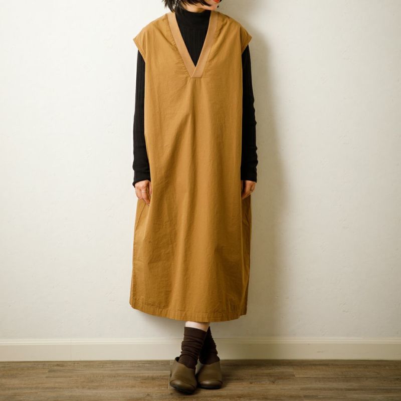 カジュアルな雰囲気でありつつ、すっきりとした印象のVネックワンピース。ベーシックなカラー展開なので、秋冬はもちろん、春には半袖と合わせた着こなしもでき、長く活躍するアイテムです。