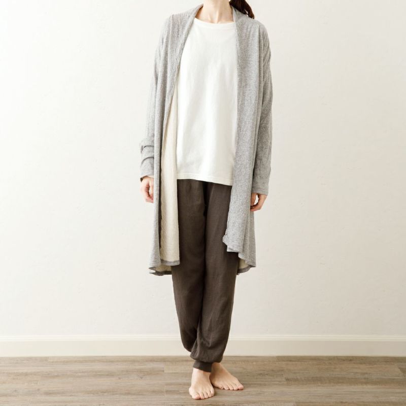 細い糸で編んだ二重の天竺ガーゼ(なめらか天竺)を使ったスーピマコットン100%のロングカーディガン。