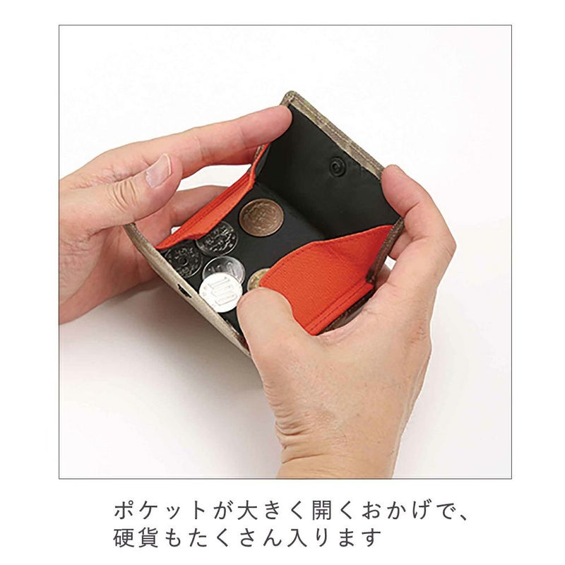 旅行、キャンプ、フェスなどのレジャーにぴったりな、手のひらサイズの小型財布。コンパクトながら、紙幣・硬貨・運転免許証・カード1枚など、必要最低限の収納スペースをしっかり確保!かさばらず、小さめのバッグにもすっきり収まって、旅行やお出かけがグッと身軽に。小さくて軽いから、お子さま用のお財布としてもおすすめ!