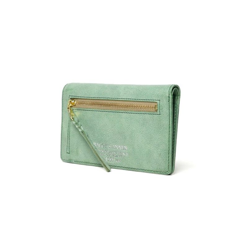 ソフトな革の表面に塗られたワックスが、まるで朝もやのような淡い色合いを表現しています。