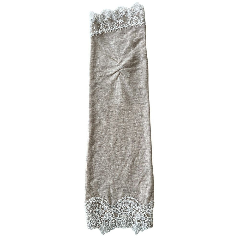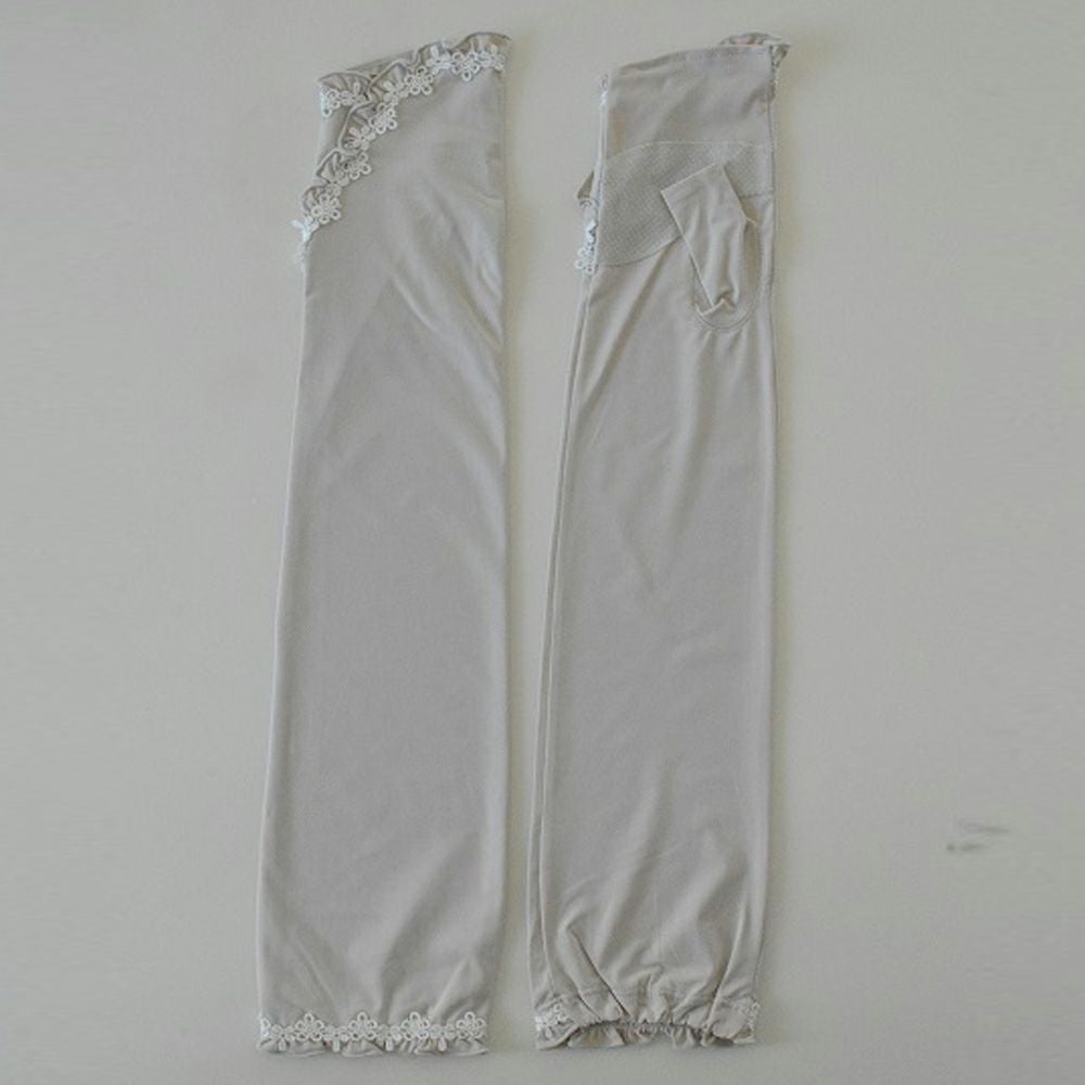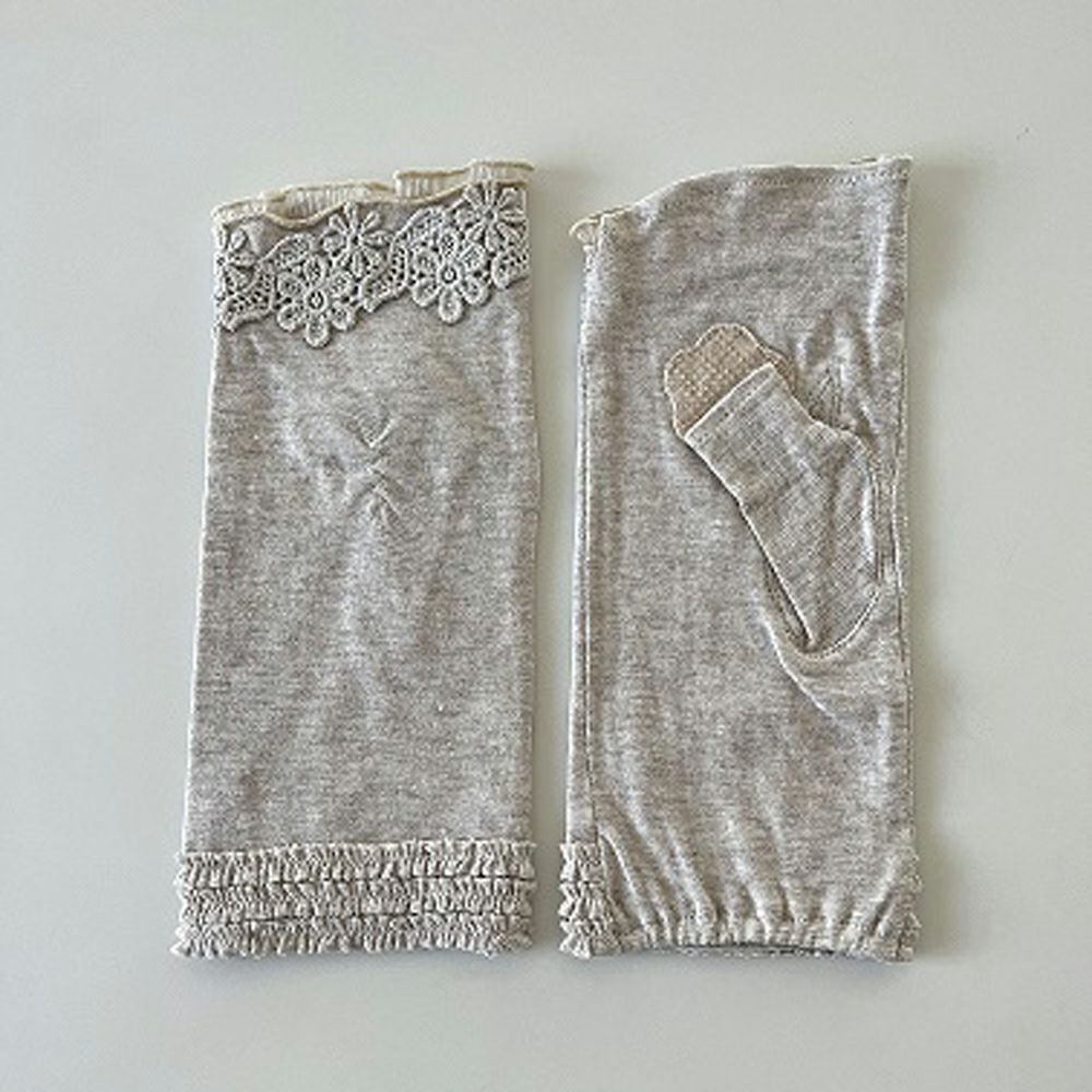 UV手袋 UVロング 細見え楊柳指先レース 杢ベージュ