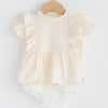 フリルエプロンのディテールを落とし込んだデザインロンパース♪