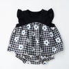 ギンガムチェックにフラワープリントを重ねたデザインが目を引く