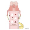 ワンタッチ式開閉フタで開けやすい、プラスチック水筒。持ち運びしやすいショルダーヒモ付きです。