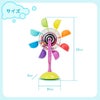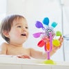カップに水をかけると観覧車がクルクルと回ります。カラフルな観覧車は回ると虹がつながっているように見えて、赤ちゃんの興味をひきつけます。