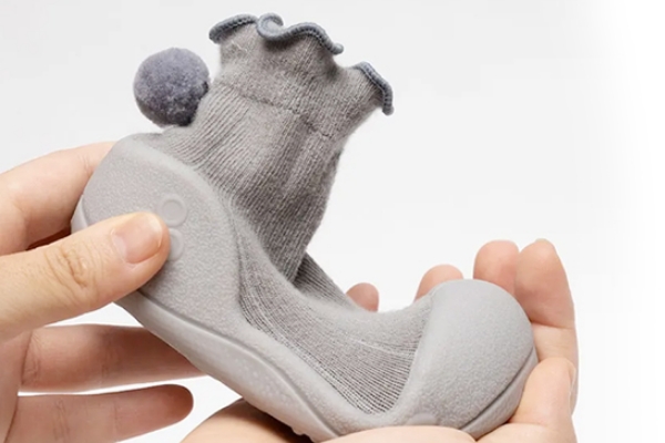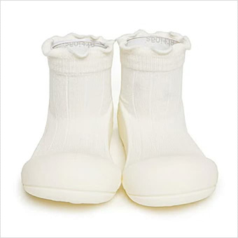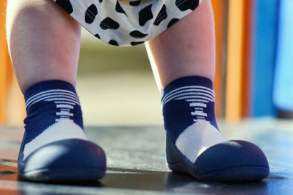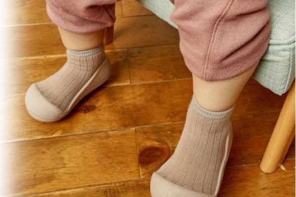 単にゴム底のソールにソックスが合体しただけではありません。アティパスの独特のフォルムはそうした赤ちゃんの足を研究し、成長のために考え抜かれ、生み出されたシューズの形です。