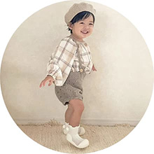 指先が動かせるまん丸ソール赤ちゃんの歩きはじめの頃の足と、歩き方に着目。まん丸と膨らんだ足先のソールは上下左右にしっかりと指先が動すためのデザインです。