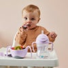 重りの付いたストローが中に液体と一緒に動くことにより、どんな姿勢でも最後まで飲むことができます。赤ちゃんが持ちやすいグリップ設計!