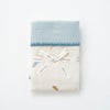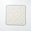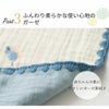 赤ちゃんの肌にやさしい綿100%。洗うたびに風合いが増す、ふわっとやわらかい4重ガーゼ仕上げ。空気がふくまれるのでふわふわとした生地感になります。
