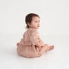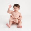 春のお出かけにぴったりなふんわり可愛いベビーロンパース。ウエストの切り替えにはフリルをあしらい愛らしく、ストライプ生地で上品に仕上げました。華やかな2カラー展開でシーズンムードたっぷり。背あきと股下はスナップ仕様で、着脱もおもつ交換も楽々◎