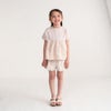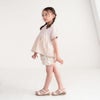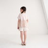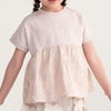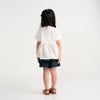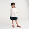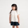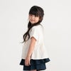 コード刺繍が新しい軽やかなフリルTシャツです。お花模様の華やかさを際立たせるのはシンプルに仕上げたヨーク。カットソー素材を採用し着やすさと動きやすさにも考慮しました。動くたびにふんわり揺れるフリルが女の子らしさを引き立てます。