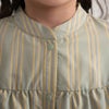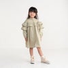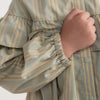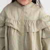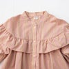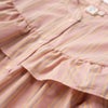 ドロップショルダーで抜け感を感じるデザインフリルワンピース♪ギャザーたっぷりのフリルデザインがガーリーな印象ながらもストライプ生地を採用することで清楚な大人っぽさとの両立を実現。袖口ゴム、前あきスナップで実用性も◎