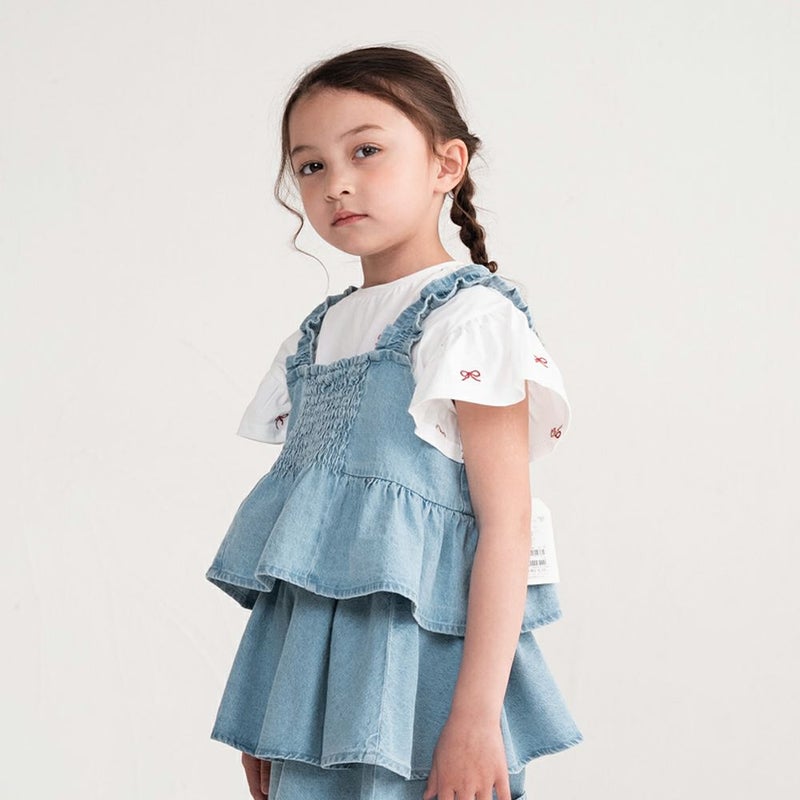 シンプルなTシャツが一気にオシャレ見えするデニムビスチェ。カジュアルな中に可憐なシャーリングデザインがベストマッチ◎フィット感もあるので動きやすく快適に過ごせます。1枚プラスするだけで手持ちコーデを簡単にアップデートできる優秀アイテム♪