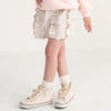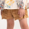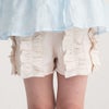 縦方向のフリルを前面にたっぷりあしらった個性際立つショートパンツ。ベーシックなカラー展開なのでどんなコーディネートにもマッチします。コンパクトなシルエットで動きやすく軽い着心地が魅力的♪後ろには便利なポケット付きで普段使いにもぴったり。