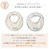 リバティ柄のリボンとバインダーがキュートなスタイ。メインの生地は吸水性がよく、軽いオーガニックパイル素材を使用。