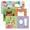 シールのおかずを貼っておべんとうをつくるボードブックです。ぞうくんのは大きく、ねずみくんのは小さく、フラミンゴちゃんのは細長く(!)、箱の形や大きさに合わせて、おにぎり・ウインナー・たまごなど、バランスよく詰めましょう。貼ってはがせるシールでくり返し遊べます。