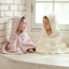 フード付きでボタンを留めるだけのバスタオルは、体温調節が苦手な赤ちゃんにサッと被せてあげられて、とっても便利!