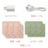 充電ケース、ACアダプター、充電ケーブル、粘着シール(無香18枚、よもぎ12枚)