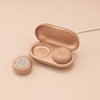 充電ケースにケーブルを挿し、本体を置くだけのカンタン充電。充電ケースはコンパクトサイズで、どこにでも持ち運べます。