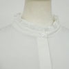 襟のフリルが可愛いらしい雰囲気のブラウスです。