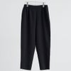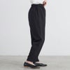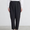 麻見えする表面感のあるクレープ素材を使用し、しわが目立ってしまう麻のデメリットを解消。吸汗性と速乾性に優れておりお手入れもしやすい機能素材です。すっきりとした細見シルエットのテーパードパンツは、ウエストゴムのイージー仕様。前中心にはゴムを通さずすっきりとした印象に仕上げました。