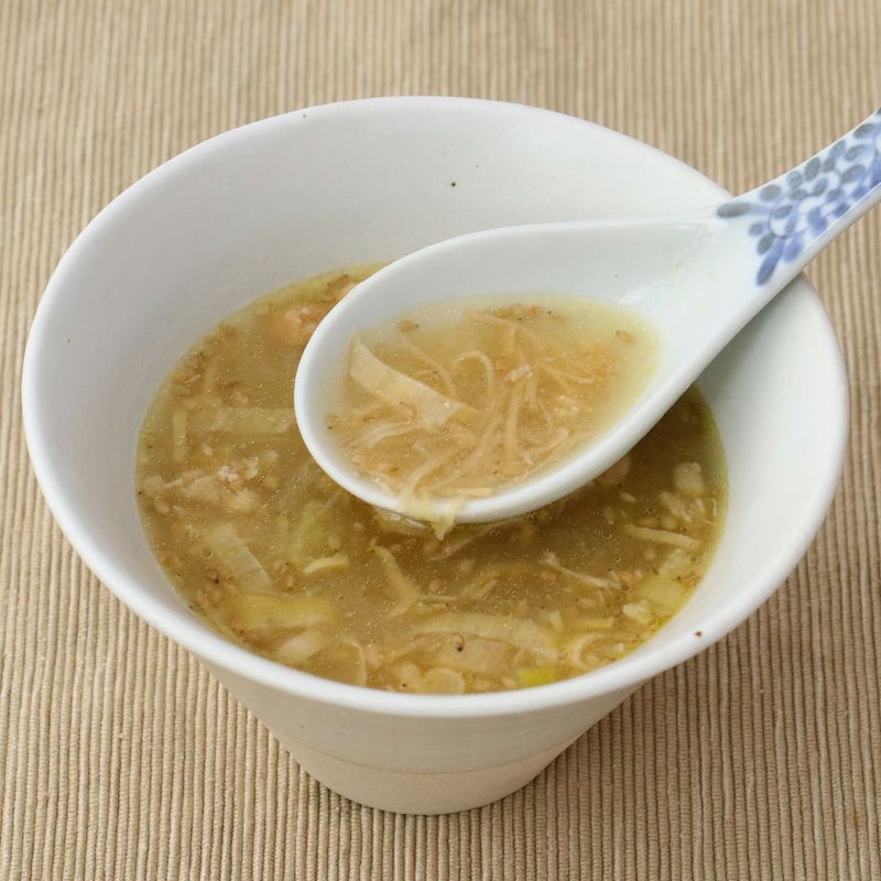 いくつリピートしてるかわからないくらい本当に美味しいスープです。 鶏肉がちゃんと感じられるので満足感もあり千切りで入っている生姜も最高です。