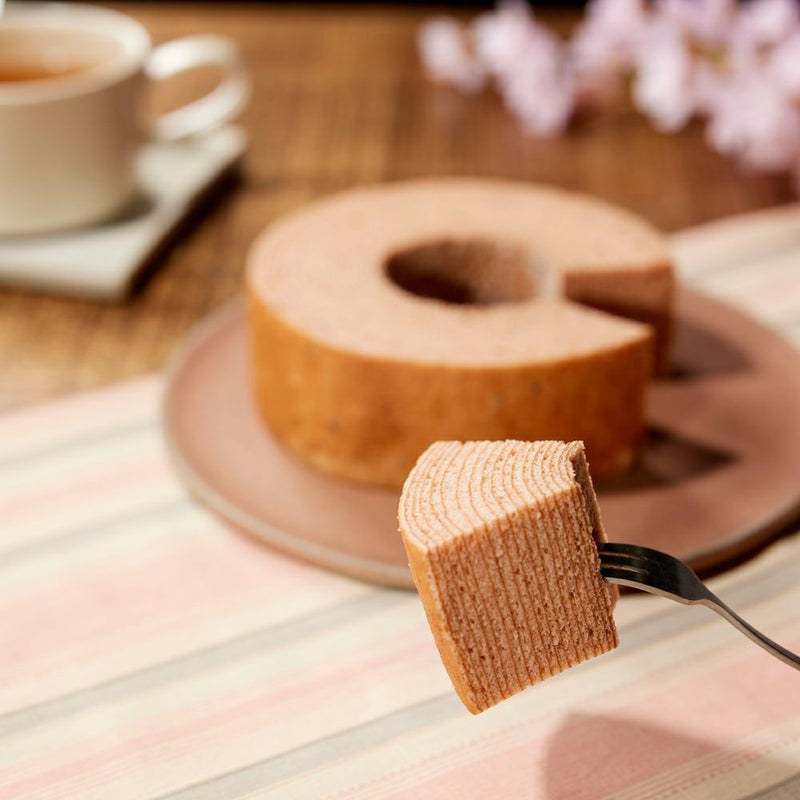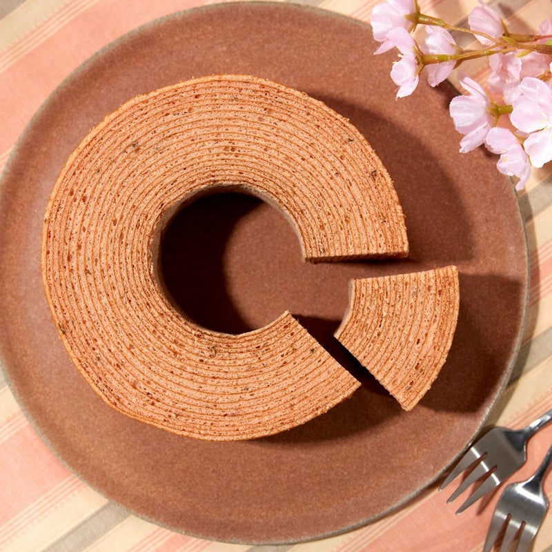 ひとくち食べると春の香りがお口の中にふんわり広がる、桜のバウムクーヘン。