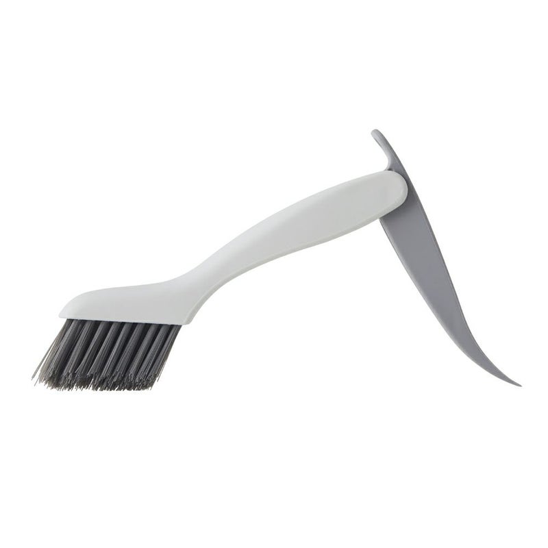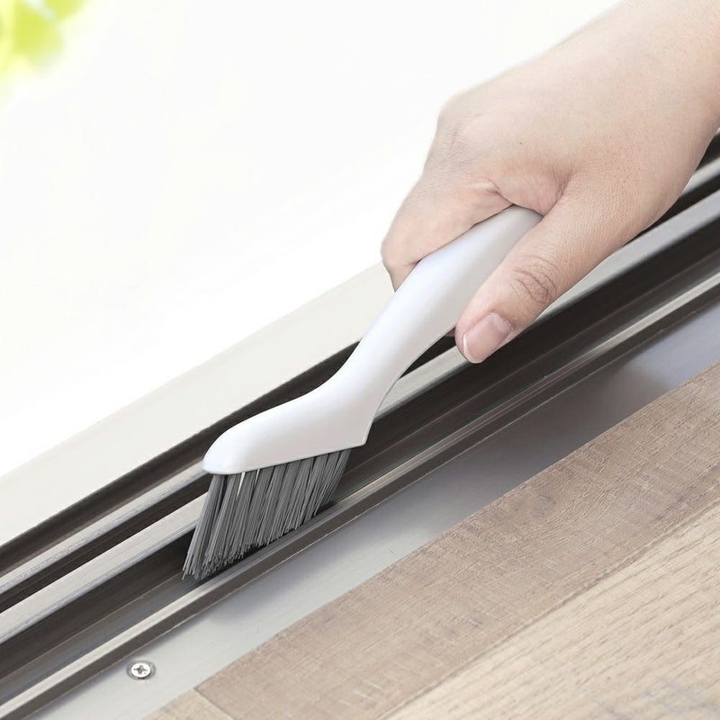 サッシやみぞの汚れをしっかりかきだしてきれいに掃除できる、スクレーパー付きのサッシブラシ。