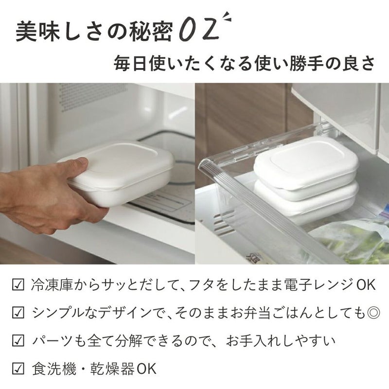 電子レンジで冷凍ごはんをムラなくふっくらと温められる保存容器。