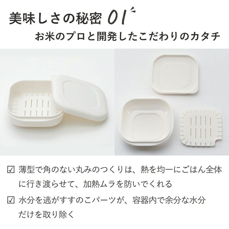 冷凍ご飯をムラなくふっくらと解凍・加熱できる保存容器です。
