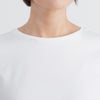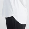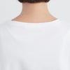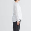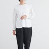身頃には、高密度のカット素材を使用。袖は細番手のサテン地を使用した切り替えブラウス。