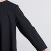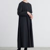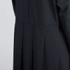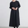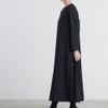程よくハリがありしなやかな風合いで毛羽が少なくクリアな表面感が特徴の生地。裾に向かってふんわりと広がるAラインシルエットに、後ろスカート部分には裾に向かって自然と消すプリーツを入れ、歩くとふんわりと広がって美しいシルエットに仕上がりました。