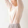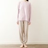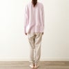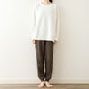 肌に触れる面にシルク混の糸を用いた、二重の天竺ガーゼ(なめらか天竺)を使ったクルーネックのプルオーバー。