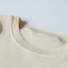 袖口と首回りに本体とは別のリブ生地を使用して耐久性を備えました。