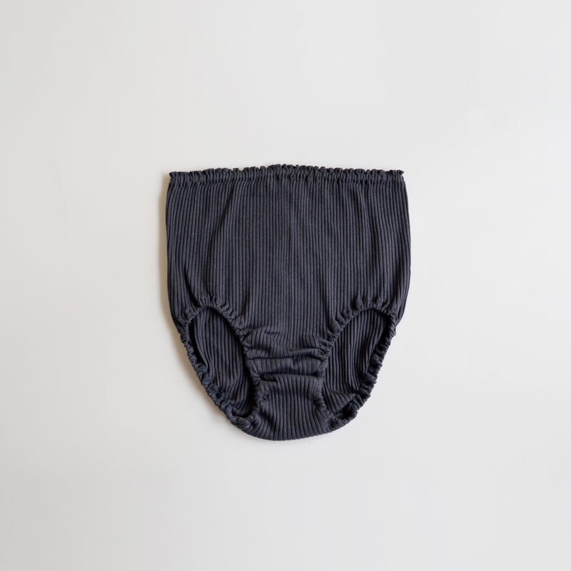 オーガニックコットン×ボタニカルダイのブラックマロウで染色したチャコールカラーのリブインナー。