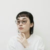 丸みを帯びたプラスチックフレームにすっきりとしたメタルテンプルを合わせることで、甘くなり過ぎず、どんなシーンにも合わせやすいです。